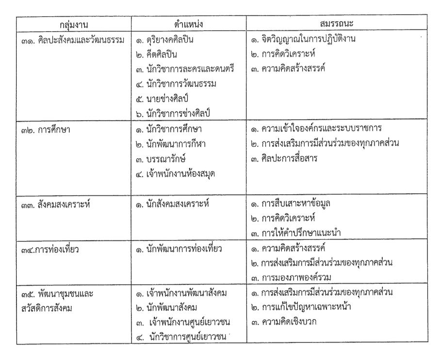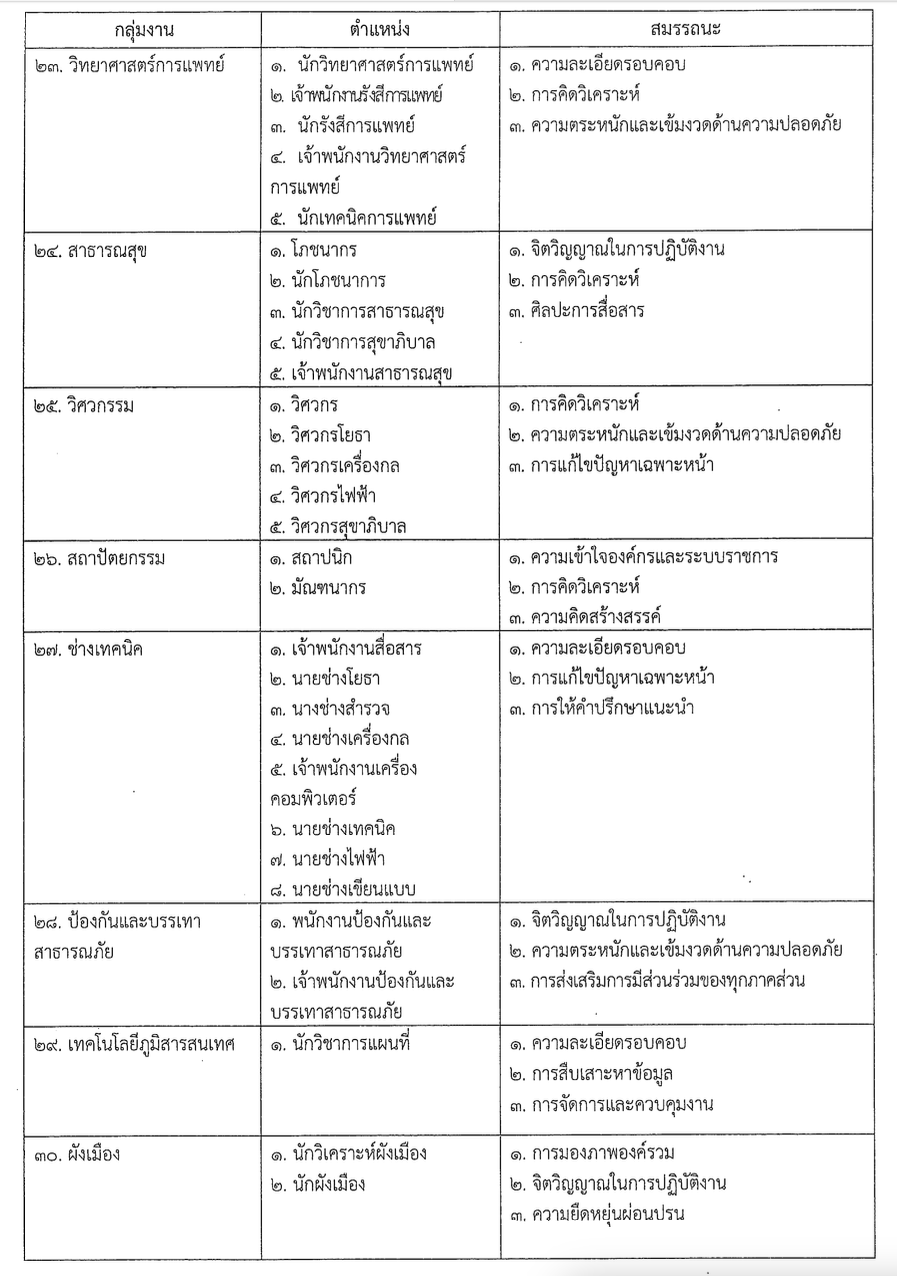 - ตำแหน่งนำมาจากตารางตำแหน่งในสายงาน