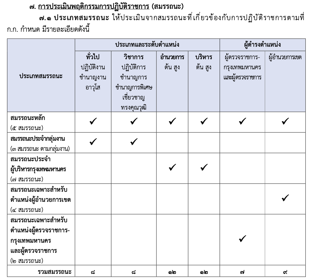 - ประเภทสมรรถนะ (หลัก ประจำกลุ่ม ฯลฯ)