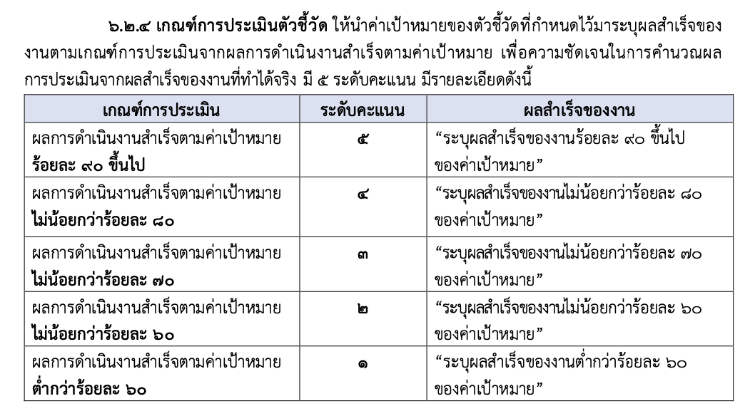 ตัวอย่างเกณฑ์การประเมินตัวชี้วัด